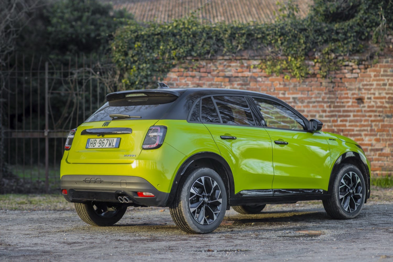 La Fiat 600 Sport se distingue par une identité visuelle marquée, inspirée du design italien. Elle introduit des coloris exclusifs comme le vert Méditerranéen, ainsi que des finitions bicolores avec toit noir qui renforcent son caractère. Les jantes noires de 18 pouces, les inserts spécifiques sur la calandre, les poignées de portes et les feux arrière, ainsi que le badge Sport dédié, contribuent à une allure cohérente et dynamique.